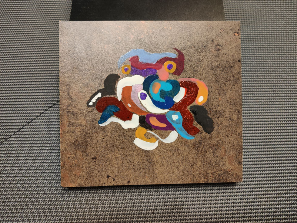 Pintar sobre una pieza de madera tipo de baldosa, para luego decorar espacios.